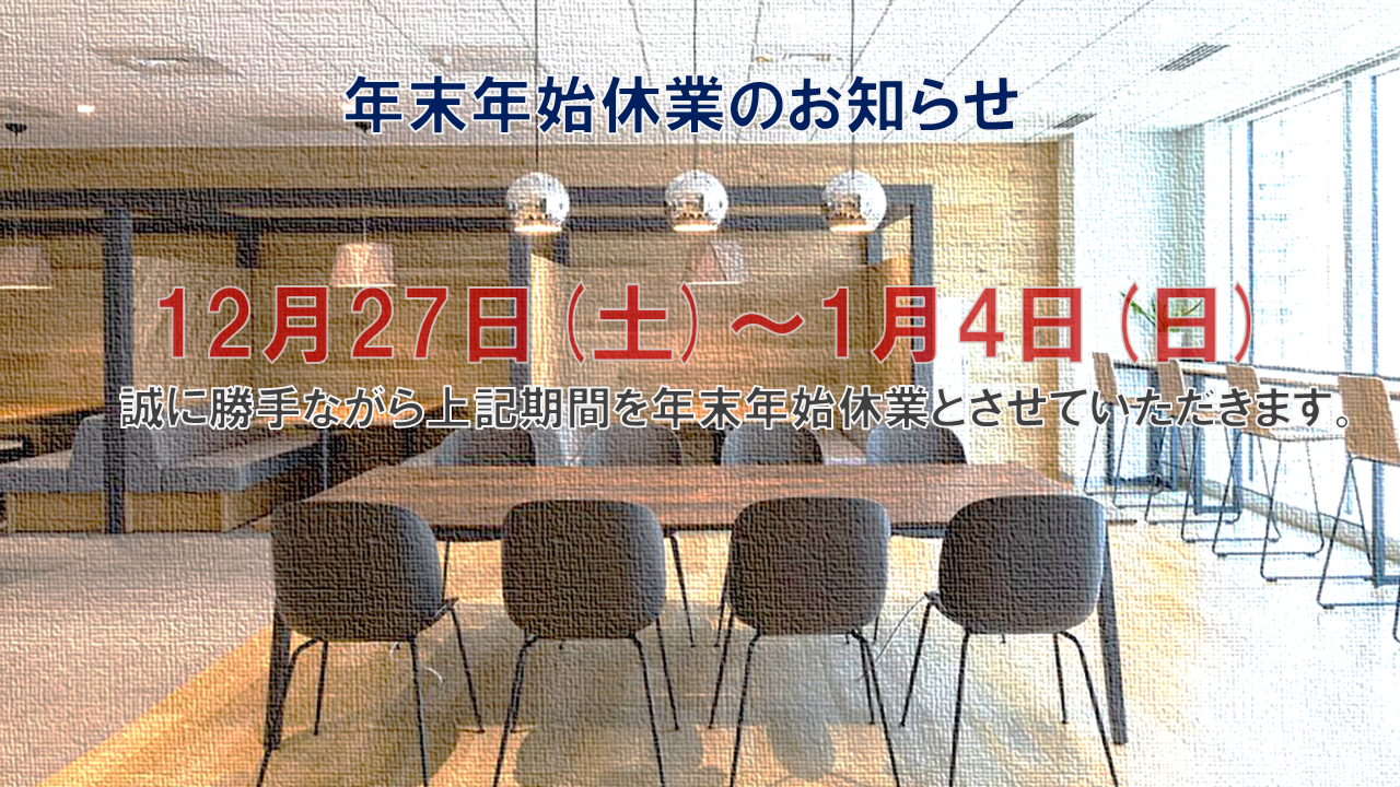 弊社は、誠に勝手ながら次の期間を年末年始休業とさせていただきます。